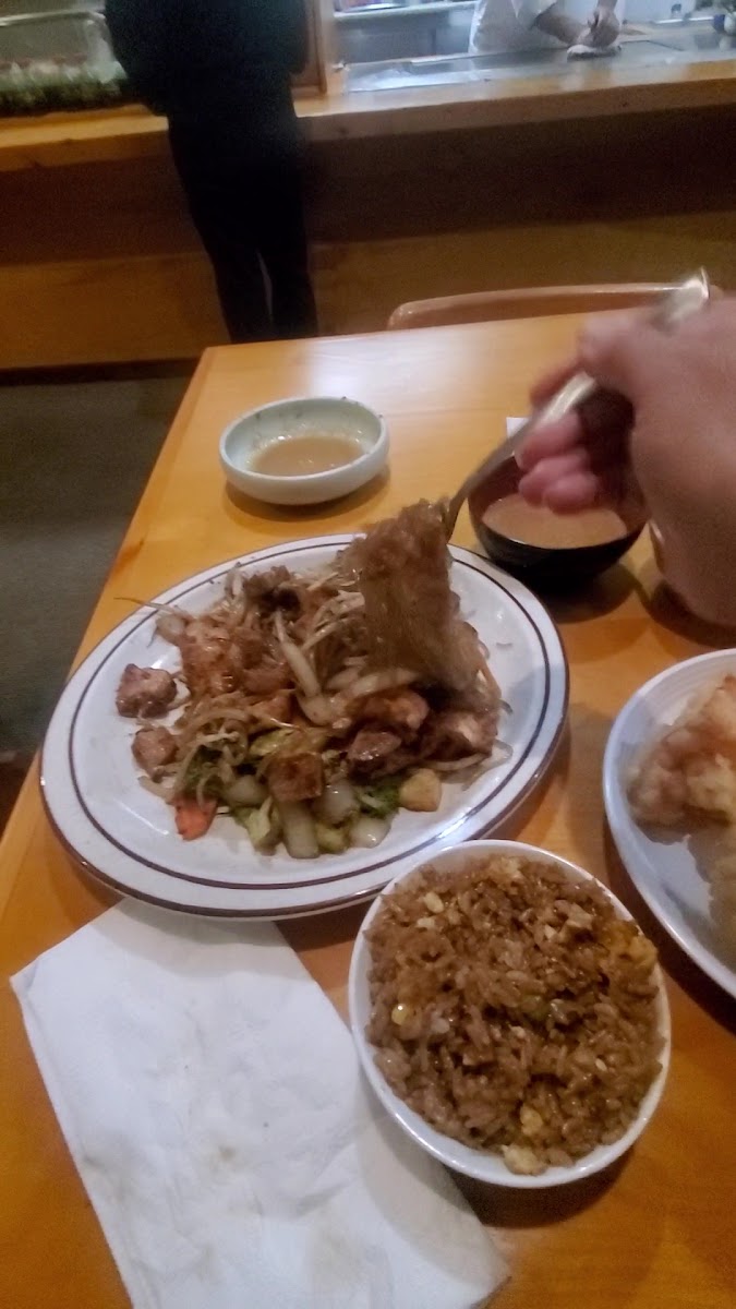 Ok. Small mom n pop restaurant. Serving up hibatchi style meals cooked at the counter. Some dishes will come from the kitchen. The waitress a lil old lady very sweet. The chef I'm assuming her husband/owner. The main dinner is typically good. Sometimes it's just ok. Their apps and sushi are all pretty good tho. And I'm taking into account it's a mom n pop shop in PB NY. So over all not a bad spot. It's on our rotation of places in PB we will go to while we wait for cheer practice to be over.